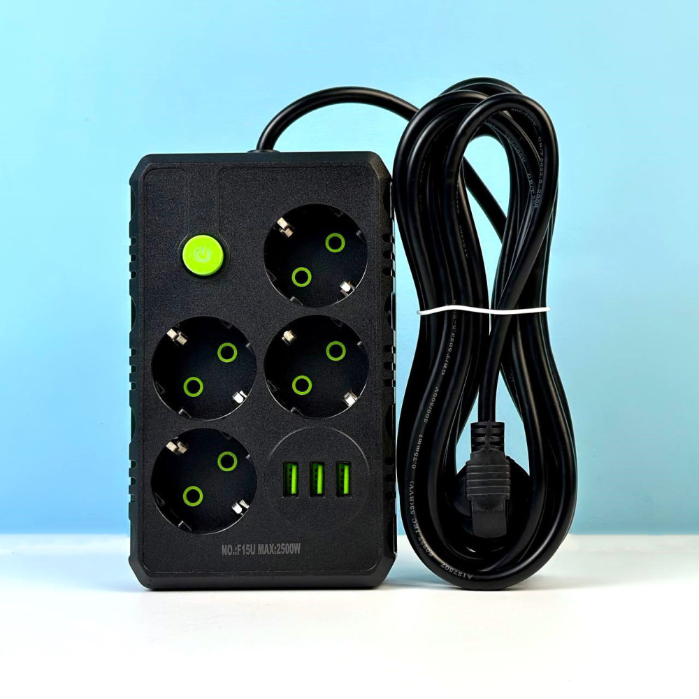 Мережевий подовжувач UA Power F15U на 4 розетки + 3USB 2м (Чорний)
