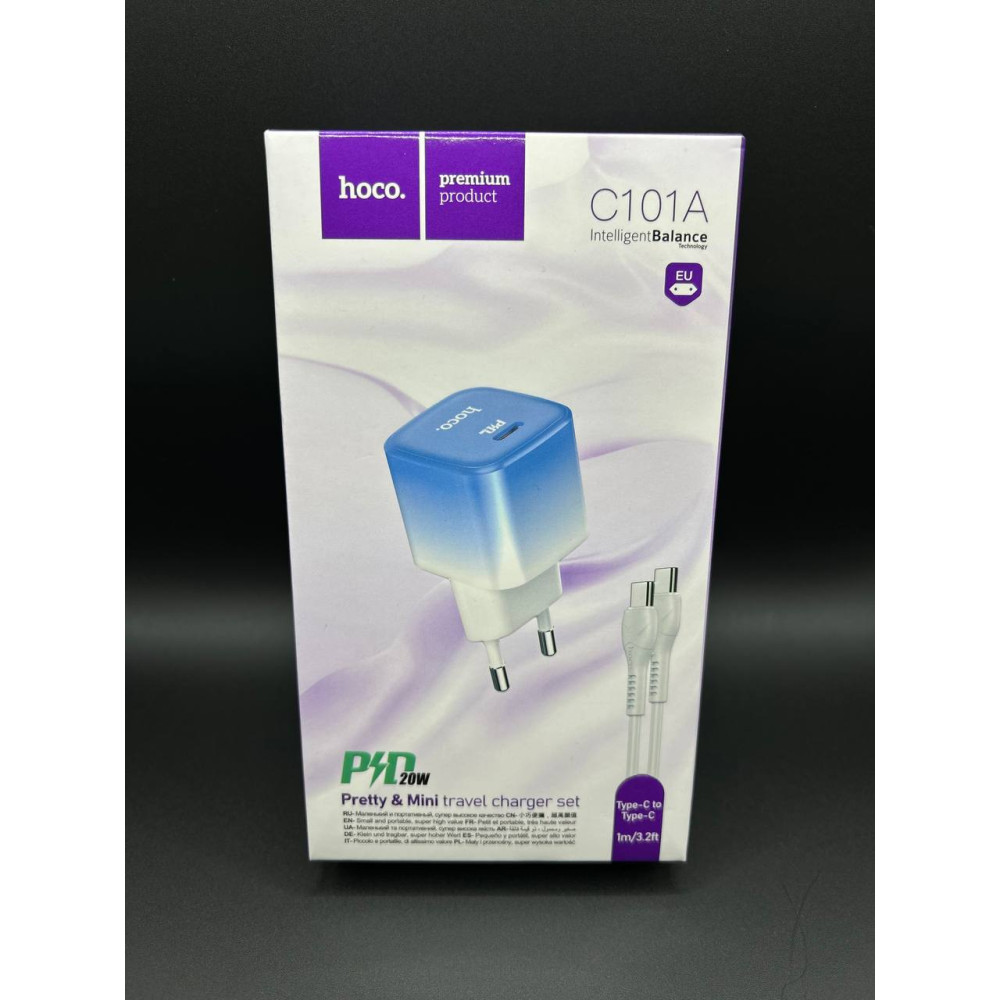 Мережевий ЗП Hoco C101A Type-C to Type-C PD20W (Блакитний)