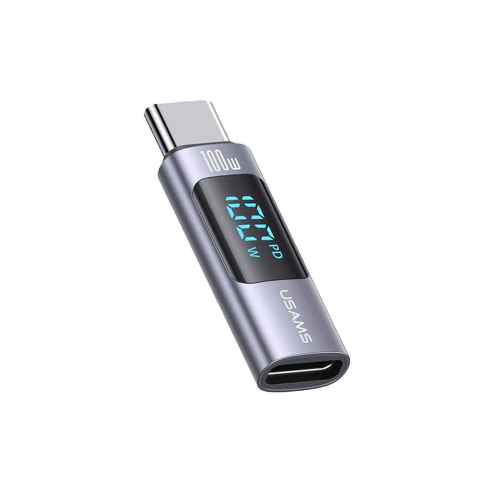перехідник Usams, Usams US-SJ682, Type-C to Type-C, алюмінієвий перехідник, 100W зарядка, сірий перехідник, USB Type-C адаптер, швидка зарядка Type-C, аксесуари для смартфонів, кабель Type-C, USB-C адаптер, техніка для дому, електроніка, зарядні пристрої, перехідники для гаджетів, універсальний перехідник, аксесуари для ноутбуків