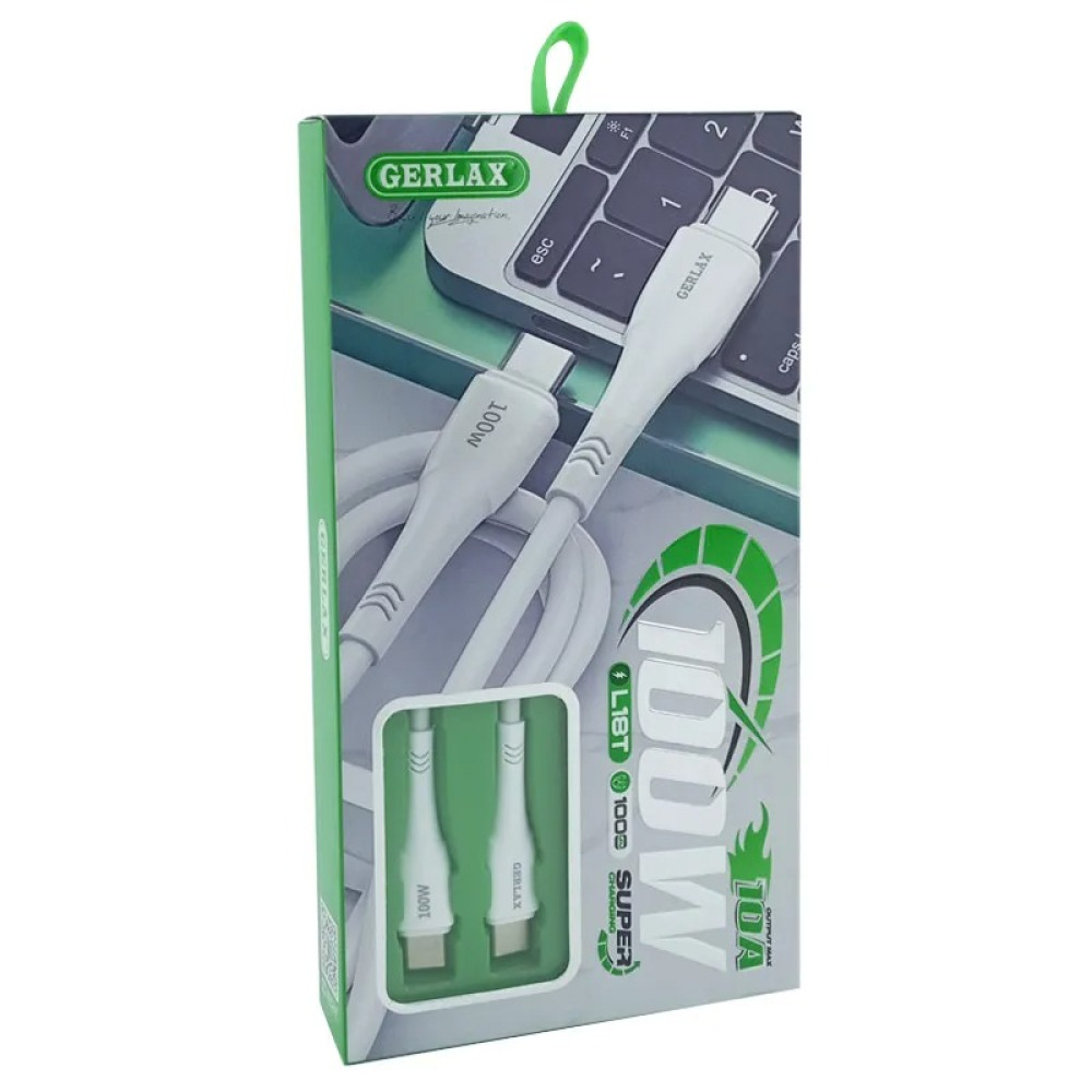 Кабель Type-C to Type-C Gerlax L18T 10A/100W білий 1м